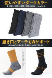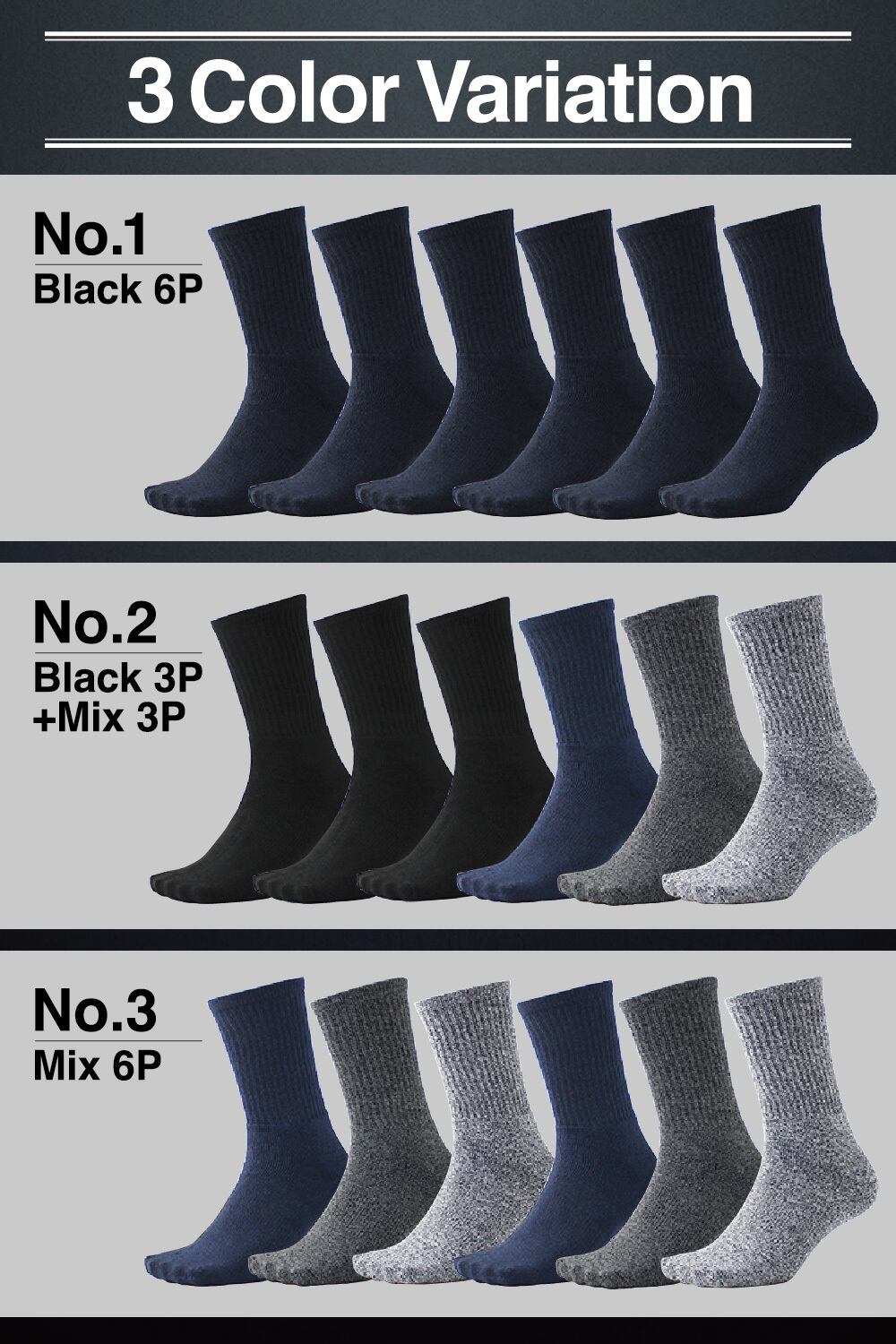 【選べる3パターンの6足組】 サイズは25-27cm(25cm 26cm 27cm)の方に対応。色は、黒色6足 / 杢柄6足 / ミックス6足(黒3足+杢柄3足)の3種類からお選びください。