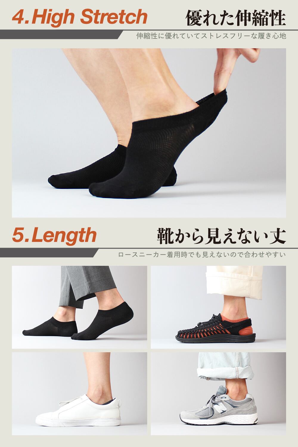 【甲部分と足底部分がメッシュ仕様】メッシュタイプのくるぶしソックスです。夏に嬉しいメッシュ加工で通気性がよく、薄手の綿混素材で、速乾性に優れています。